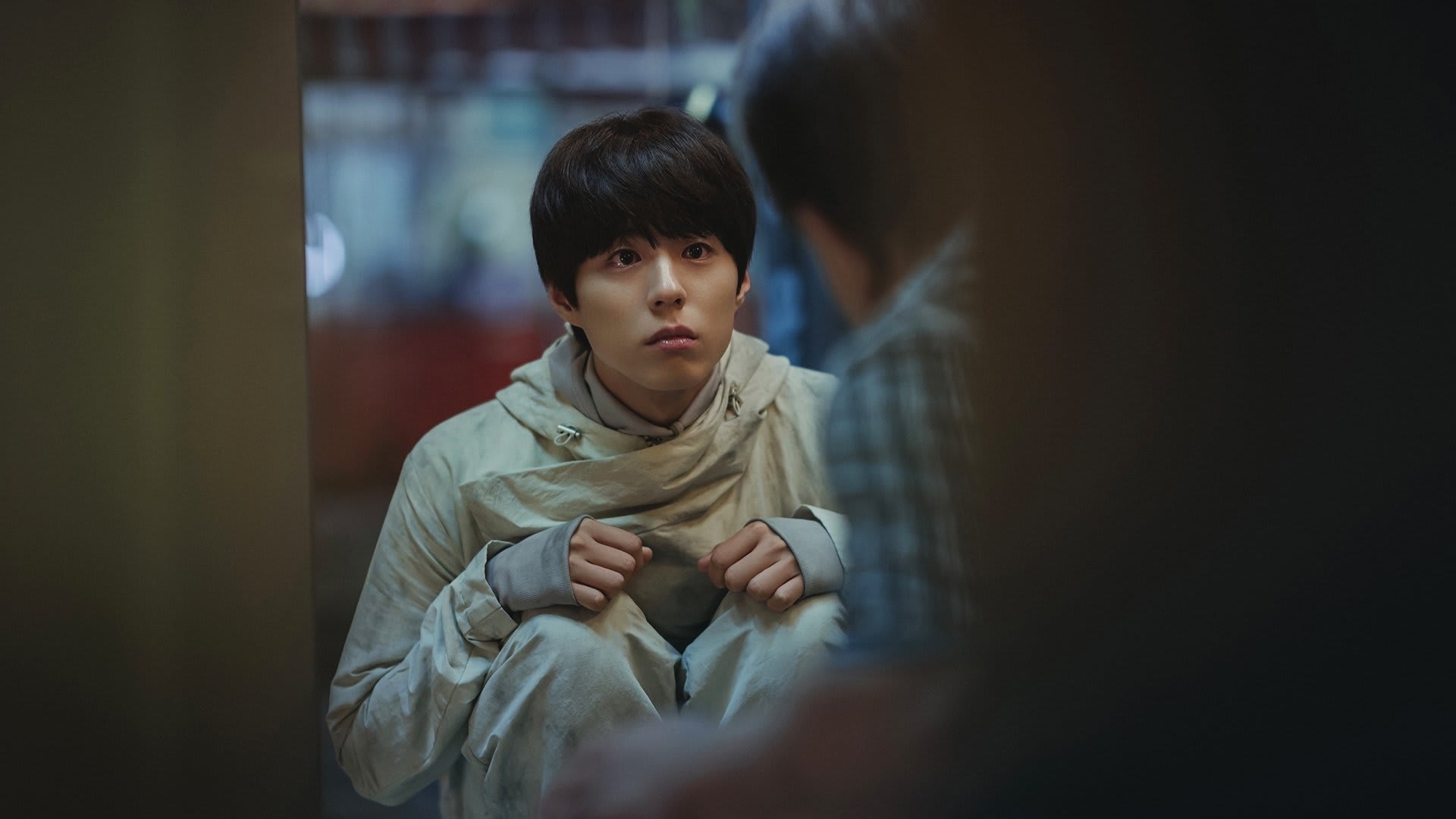 Night at the Motel—A Name and a Hoodie: In a thin-walled room, Gi‑heon buys Seobok a hoodie and hesitates over the size, a domestic gesture he hasn’t made in years. They share a look in the cracked mirror that says, “we are each other’s emergency contact—for now.” Seobok tries slang he picked up from TV; Gi‑heon pretends not to laugh. Outside, a black van idles, reminding us that softness has to be smuggled into this story. The scene deepens their odd kinship without a single speech.