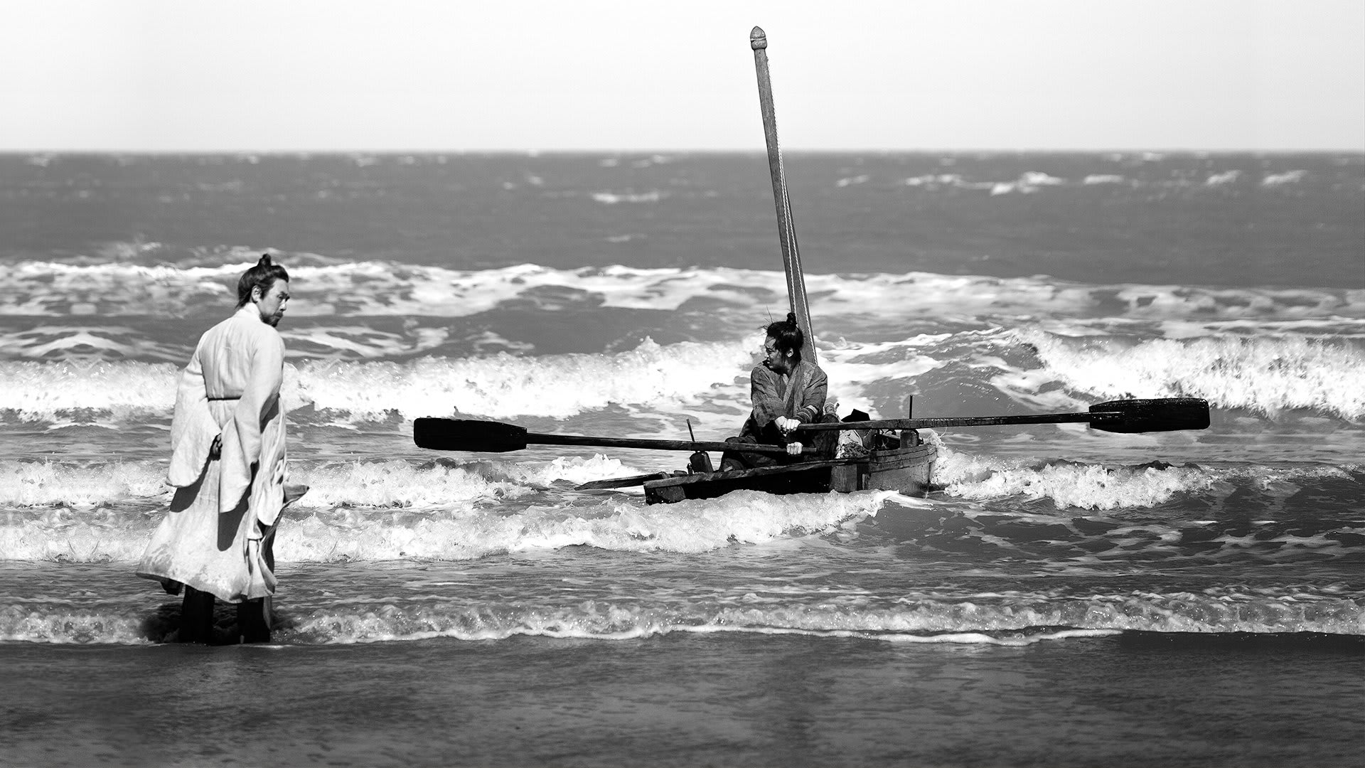 Genre labels barely contain it. It is at once a historical drama, a coming‑of‑age tale, a buddy movie, and a philosophical conversation written in foam on the water. The monochrome cinematography refuses mere nostalgia; it’s purposeful, sculpting faces, fog, and waves into something that feels like living brushwork. A U.S. critic even called it a “lush monochrome” that bathes the drama in romantic memory, which captures the movie’s visual spell.