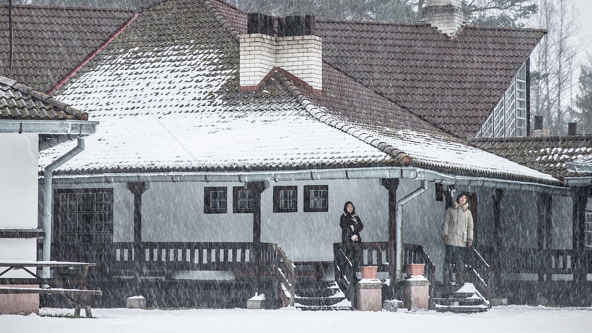 On a winter morning in Helsinki, two Korean parents linger after dropping off their children at a special-needs camp, the cold turning their breath into little secrets that disappear as quickly as they form. The woman, Sang-min, asks the man, Ki-hong, for a light; a courtesy sparks a conversation, then a comfort, then a quiet pact to keep each other company as they follow the bus into the white. A sudden snowstorm blocks the road back, and the world shrinks to an inn, an empty restaurant, the sound of radiators and the hush of falling snow. They walk through woods washed in gray and find a secluded sauna, a place where names don’t matter and warmth feels like mercy. What happens there is not just heat but hush—the kind of closeness that feels like a confession with no words at all. They part the next morning without exchanging names, as if protecting the dream from the daylight it cannot survive.