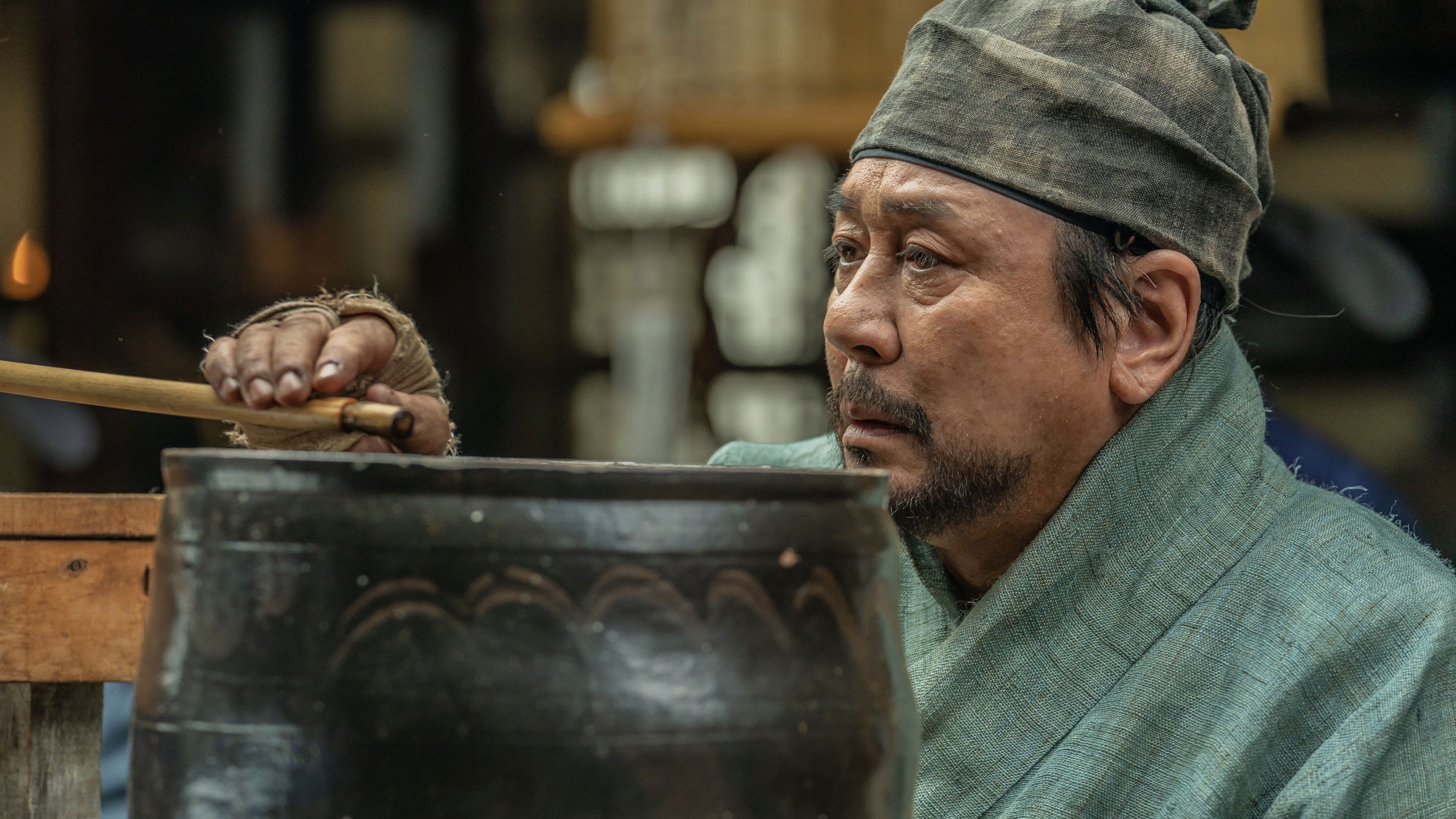 Jeon threads empathy into every look, suggesting a life of observation sharpened by constraint. The performance hints at an interiority that extends past the frame—exactly the kind of textured supporting work that makes a period world feel lived-in rather than staged.