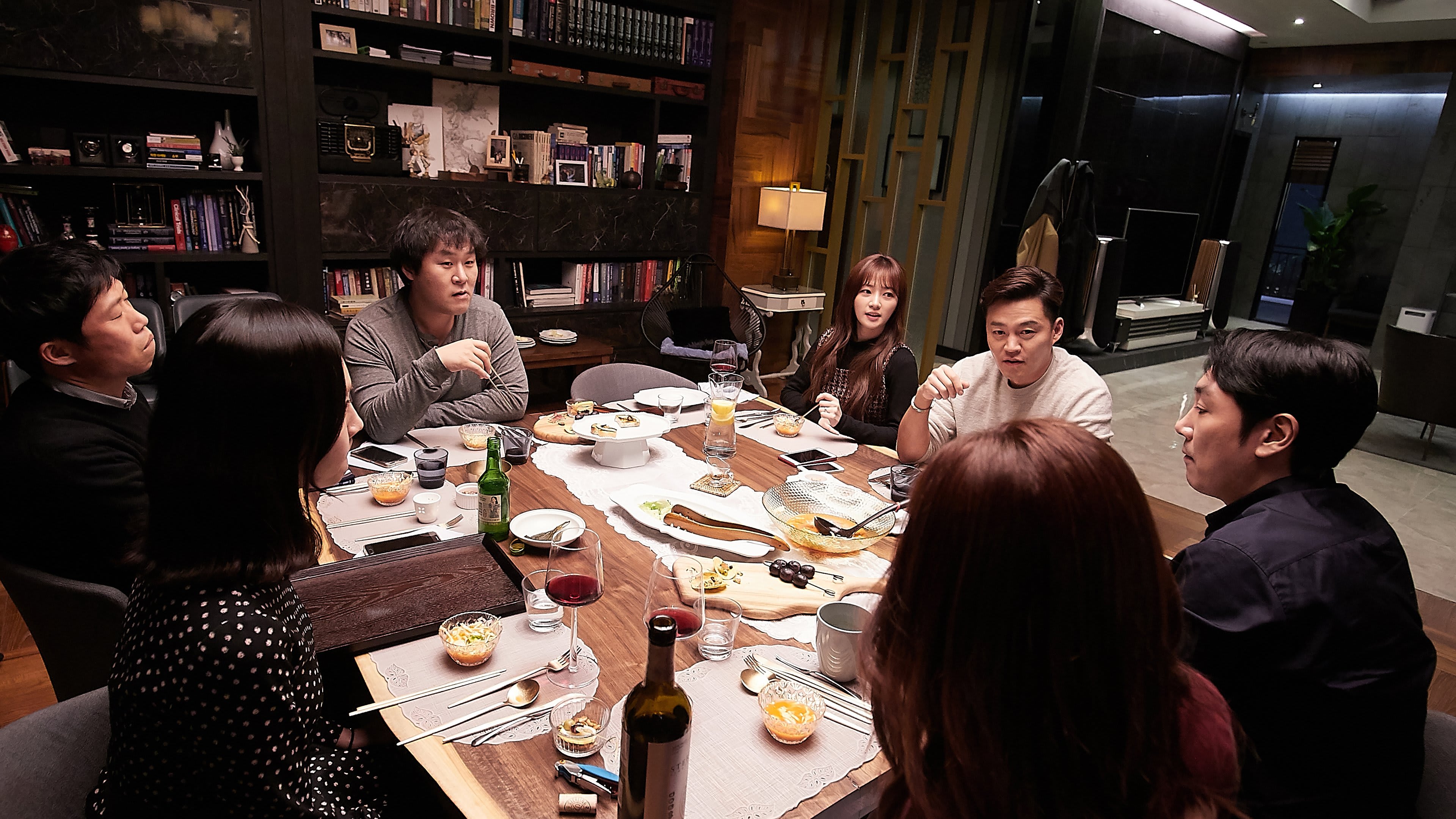 It starts with a view of Seoul through new windows—Seok‑ho and Ye‑jin’s housewarming, a table set for old friends who haven’t outgrown each other, or so they want to believe. The guest list feels lived‑in: Tae‑soo, who likes rules he can control; Soo‑hyun, who’s learned to shrink to fit them; Joon‑mo, the charmer with business dreams; Se‑kyung, younger and fiercely in love; and Young‑bae, newly single, arriving alone. Wine loosens memories, and nostalgia does its usual trick of sanding down old grudges. Have you felt that warmth, the one that convinces you this—these people—are safe? Then Ye‑jin floats a game that sounds harmless: every new call on speaker, every text read aloud, every notification shared. Jokes are made; eyebrows lift; phones, the black boxes of modern life, are set faceup on the table.