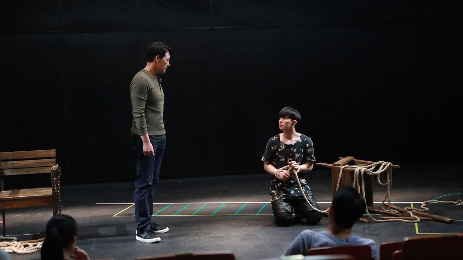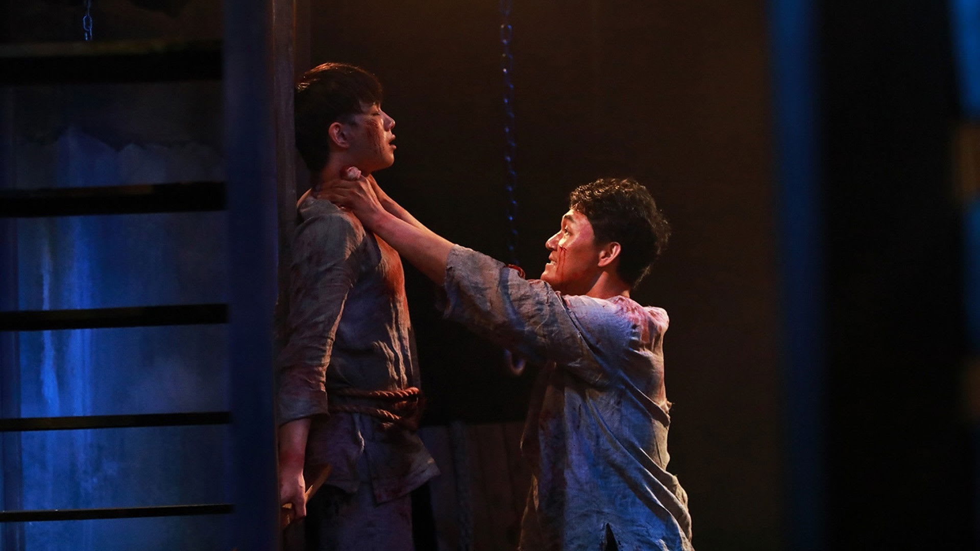 A mistake ruptures the calm. In a rough rehearsal, Jae‑ha pushes too hard and Young‑woo gets hurt—not gravely, but enough to shake them. The accident is a confession by other means: Jae‑ha’s control is fraying, the role crawling under his skin until he can’t tell where Walter ends. He apologizes with the formality of an adult, yet his eyes beg in another language. Later, a quiet theater holds them like a secret; they run the scene again, but gentler, breath syncing, voice to voice. The kiss happens like muscle memory—as if the characters claimed their mouths first, then the men followed. Hee‑won sees. And in that instant, the triangle is no longer metaphor; it is a living geometry, with angles that cut.