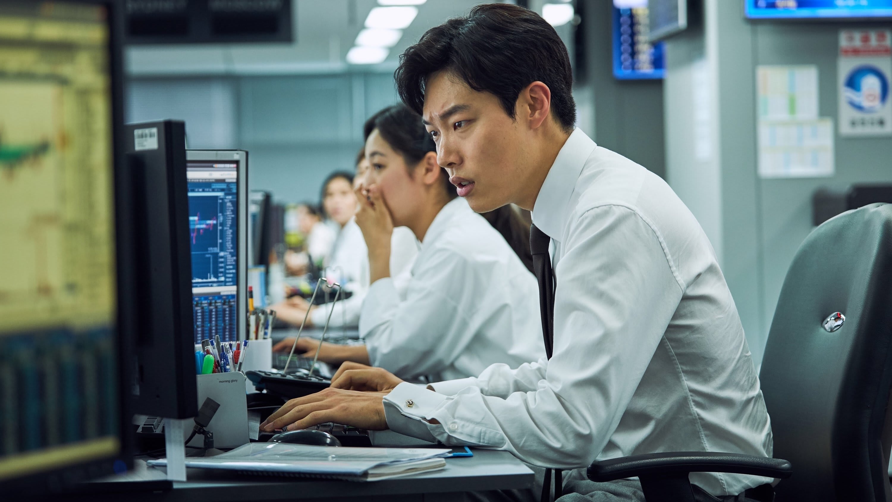 The direction favors immediacy over exposition. Park’s set pieces glide from whispered tips to wire transfers to raids, editing in a way that mirrors the market’s whiplash logic. The camera loves reflective glass—offices, phones, train windows—so that every choice arrives with a literal mirror, asking, “Is this who you are?”