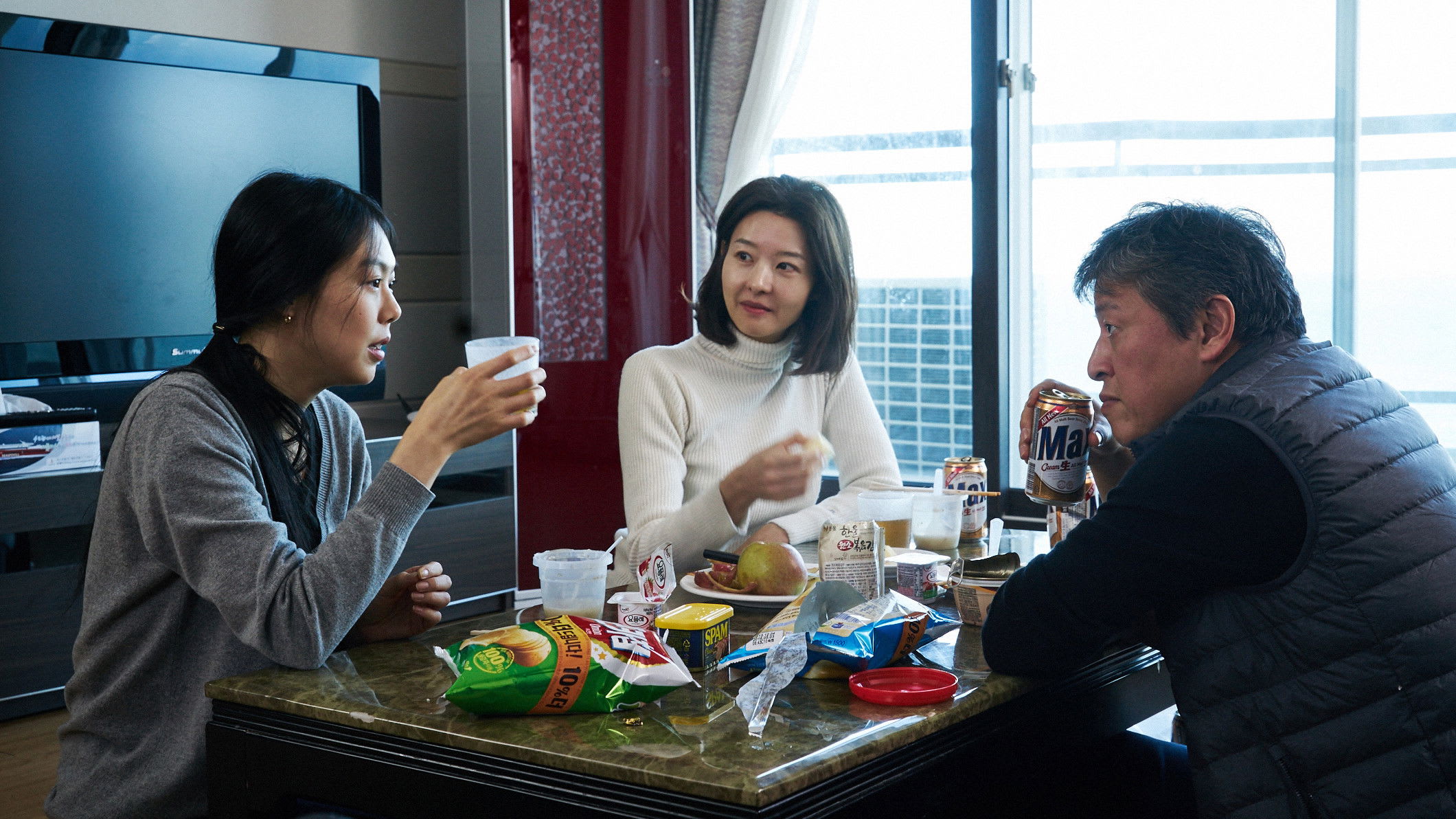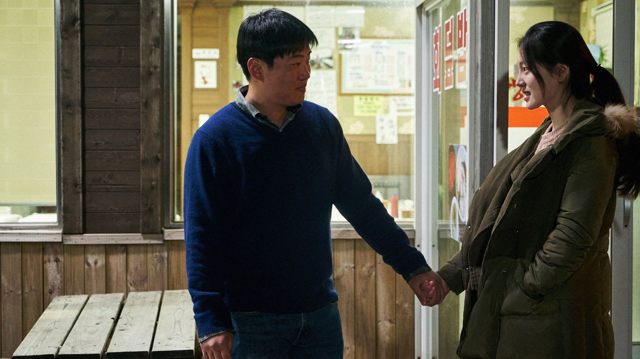 The second part begins after a kind of curtain drop: now it’s winter in Gangneung, on Korea’s east coast, and Young-hee is back among people who understand the grammar of her silence. The first image is of her lingering alone in an empty movie theater—another beach of sorts, waves of light gone, seats like shells. Outside, the city is bracing and practical; inside, friendships feel both snug and sharp. She meets old companions for dinner, where soju smooths the edges until honesty turns them jagged again. Those tables are where the real weather happens: someone laughs too hard, someone cries without warning, someone tells a story they shouldn’t and can’t stop. As the night deepens, you feel the pull of a confrontation that must happen for the tide to finally turn.