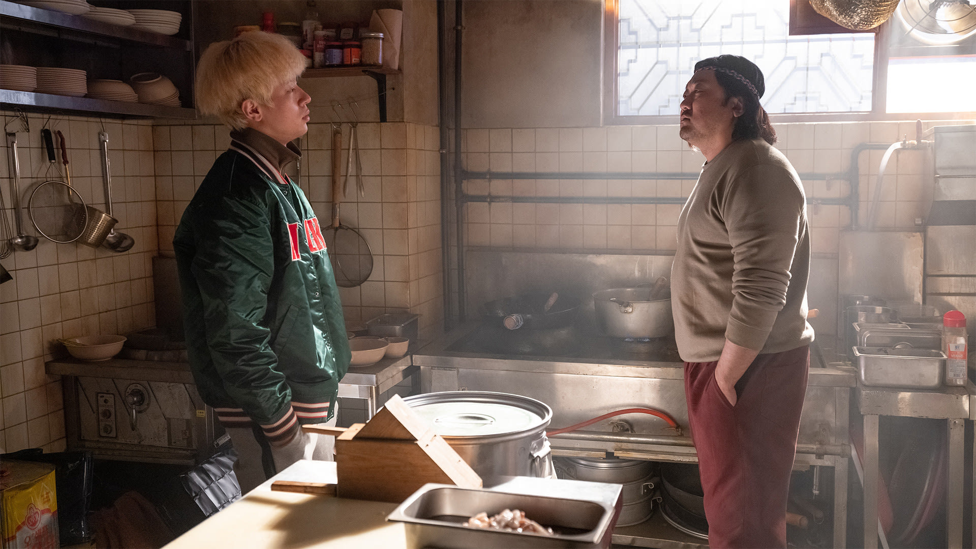 Taek-il flubs deliveries, burns his hand, and gets chewed out by Geo-seok, who treats the kitchen like a classroom and a sanctuary. Their rhythm is gruff, comic, and slowly tender: a kid trying to swagger, a man refusing to be impressed, both learning to listen between the lines. On one errand, Taek-il sees a neighborhood where everyone knows the cook by name, where regulars argue over whether the noodles were better last spring. Community is plated here alongside black-bean sauce, and Taek-il begins to swap smart-aleck comebacks for quiet competence. The boy who fled noise finds calm in the sizzle of a wok.