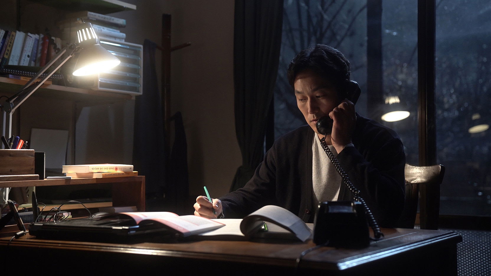 The alley and the unanswered call: After news breaks that Soo-yeon may be in danger, the film narrows to the glow of a phone screen in the dark. Ji-geun and Yong-ju split down two alleys; Min-jae’s call goes to voicemail. No music swells—just sneaker scuffs, distant scooters, and the teacher’s breathing. It’s terrifying because it feels so real: when care is a race against time, seconds are a lifetime.