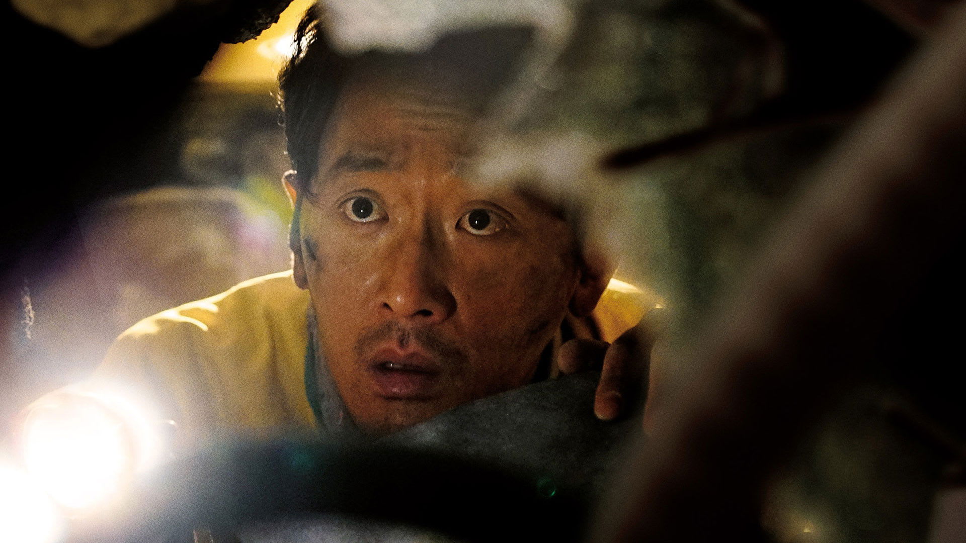Lee Jung-soo (Ha Jung-woo), an automobile salesman, leaves work with a pink-and-white birthday cake riding shotgun—his daughter is waiting at home. He calls his wife, Se-hyun (Bae Doona), promising he’s nearly there, then enters the newly opened Hado Tunnel. Inside is ordinary darkness: lane reflectors, a low hum, the radio’s comfort. And then the world tears. Concrete rings buckle, rebar screams, and in an instant Lee Jung-soo is no longer a commuter; he’s a survivor pinned beneath a mountain of failure. In the shaken quiet that follows, he checks his breath and his battery—two bars of life.